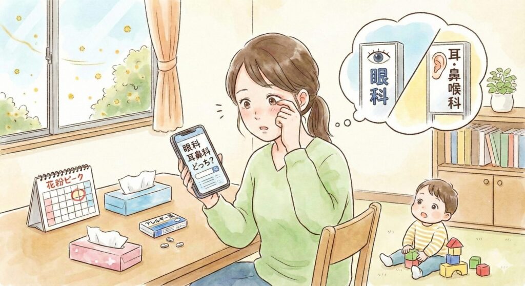 「鼻水メインで、目は痒いだけ」 ➡ 耳鼻科(「ついでに目薬もください」と頼めばOK!)なんなら、小児科でもOK