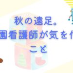 暑かった夏が過ぎ、やっと快適に過ごせる日々が増えてきました。園でも芋ほりや遠足などで園外活動が増えてくる頃ですよね。